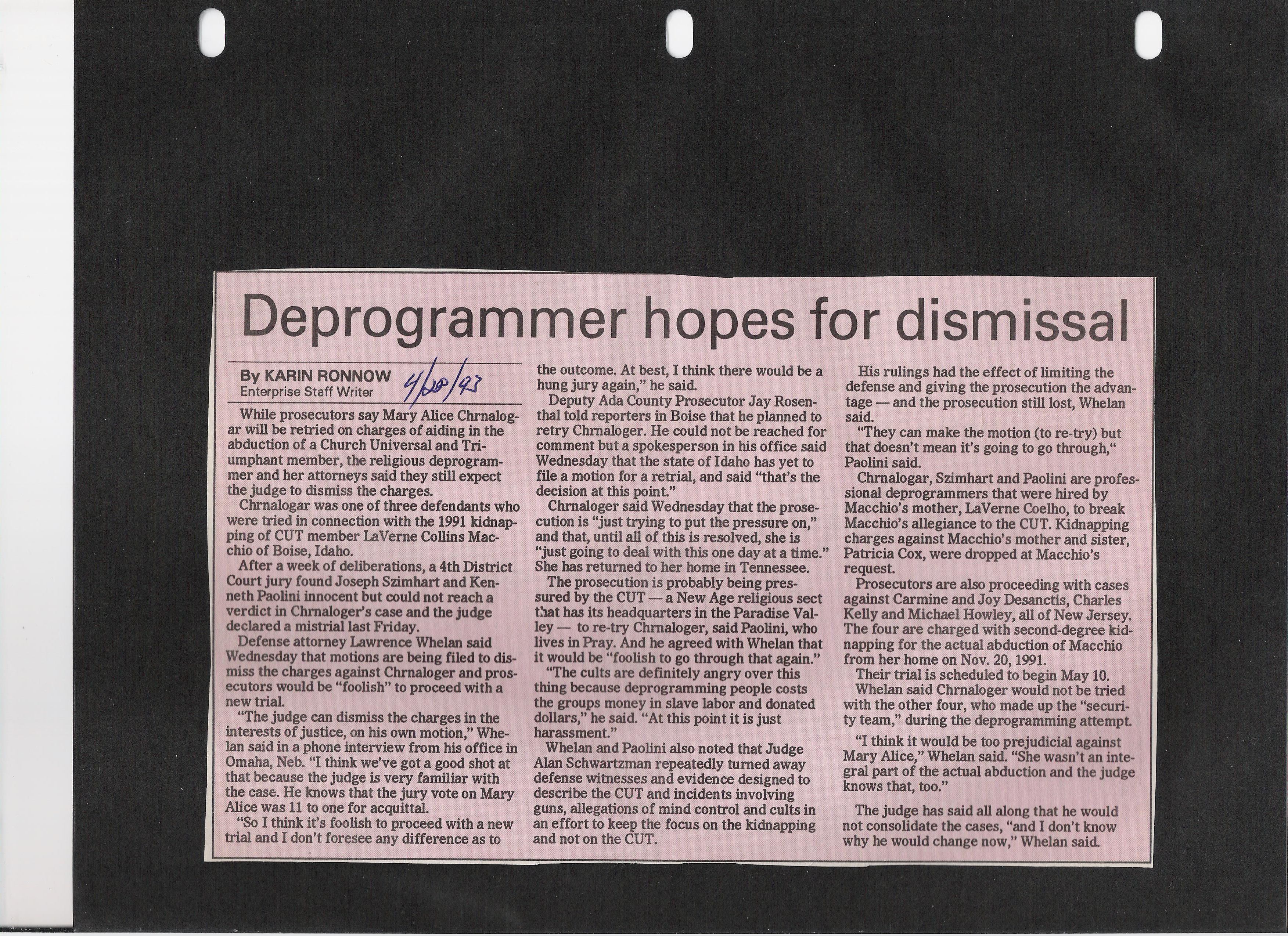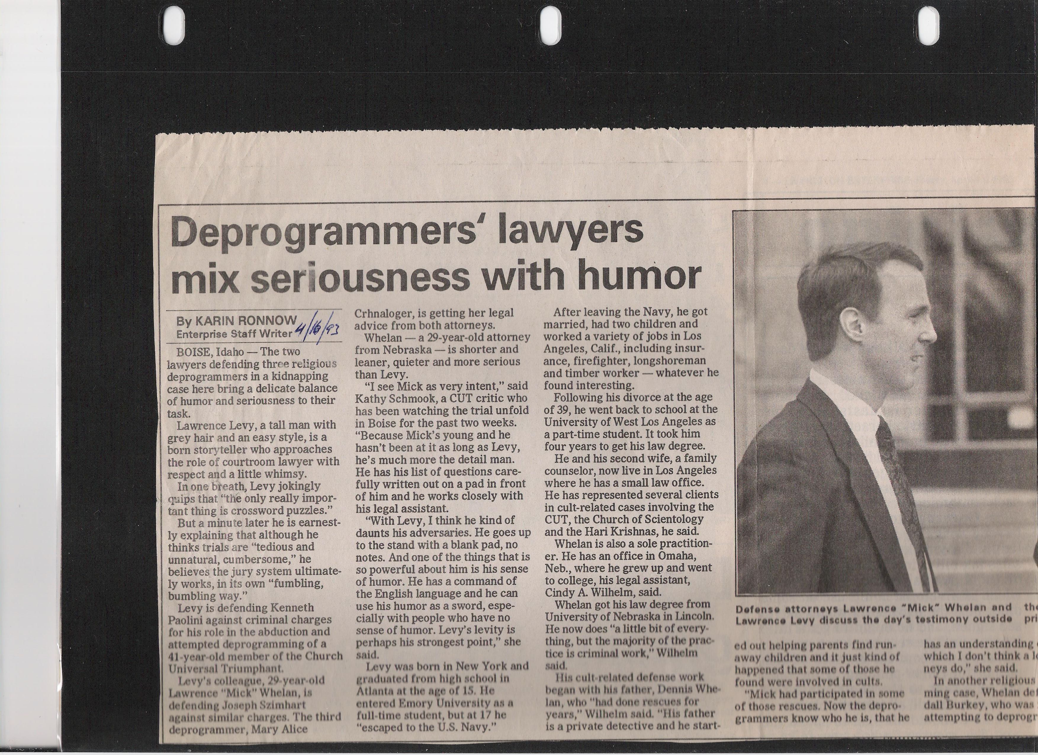 The subjects include the Environmental Impact Statement, the Paolini deprogramming trial, the lawsuit with the IRS, The death of Mitch Mandell and sales of land by the Church.